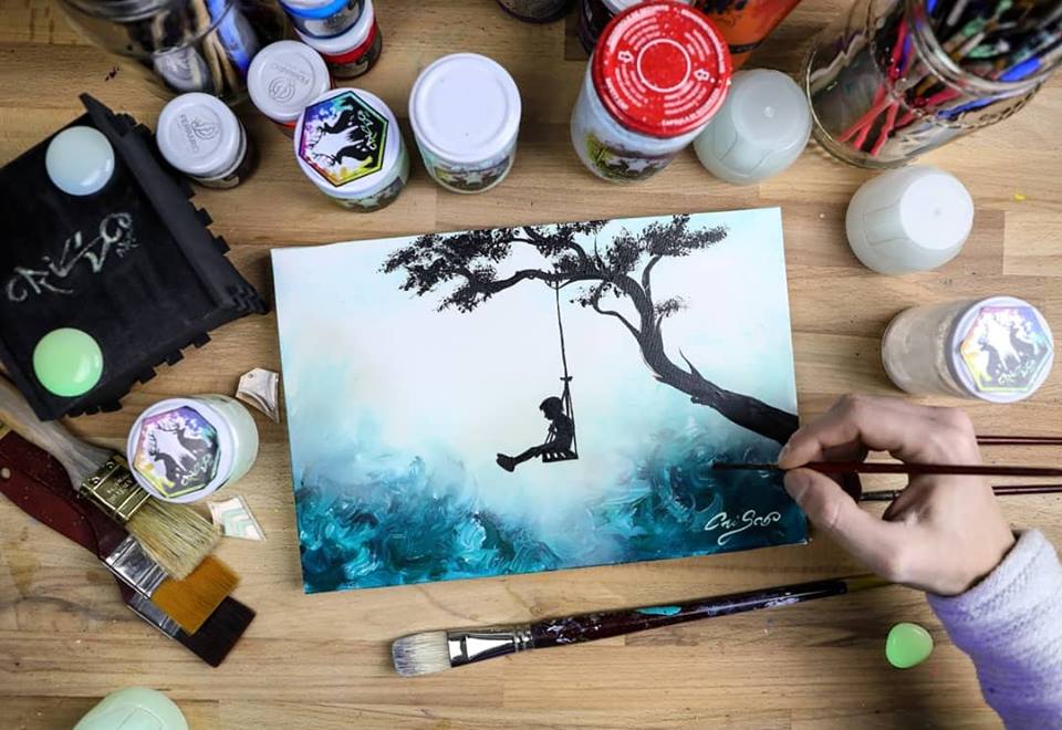 ▼他也想用自己的畫作鼓勵人們,只要不放棄希望努力去尋找,黑暗中也蘊藏著明燈。