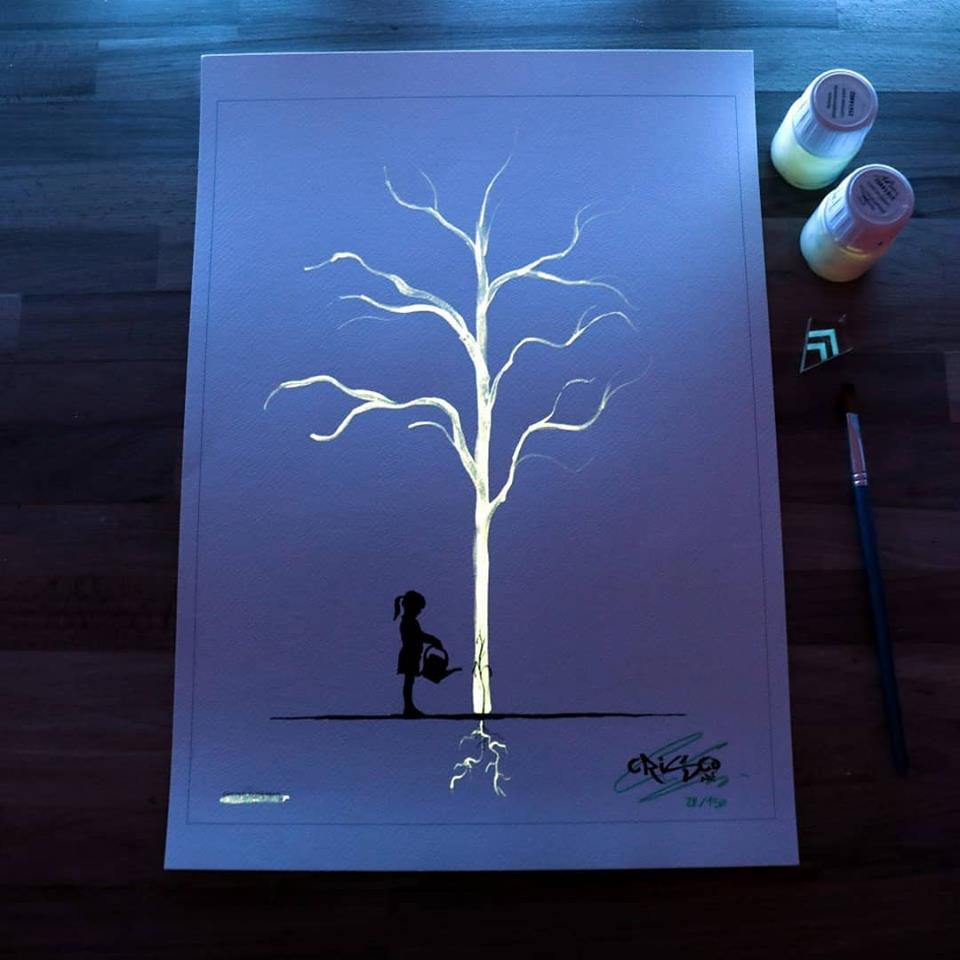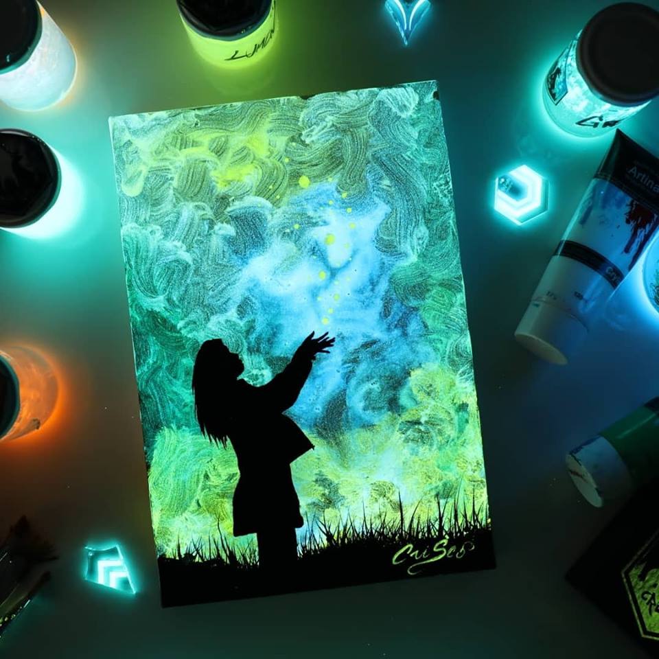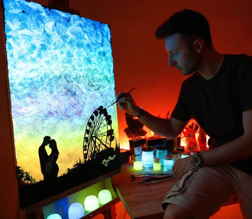 2019年03月13日義大利藝術家Cristoforo Scorpiniti擅長用螢光顏料作畫,他將螢光劑調配上顏料創作出一幅幅美麗的畫作,在日光下它們是精妙的繪畫,而一到夜晚,螢光畫作如夢如幻的氛圍更加驚艷動人。