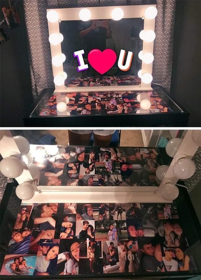 ▼男友常常看到我坐在地上化妝,出差一週回來發現一個愛心滿滿的梳妝台。
