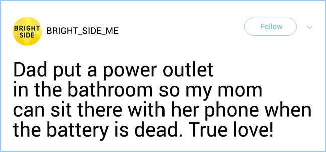 ▼爸爸在廁所裝了插頭,這樣媽媽在上廁所時就不怕手機沒電了。真愛!
