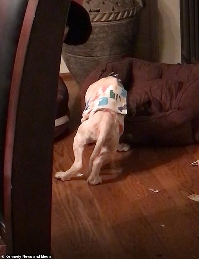 ▼Jordan剛剛2歲,但因為沒有被愛過,所以面對陌生人總是非常緊張。Melissa收養牠後,為牠創造了舒適安全的環境,還給牠買了一張軟軟的床。她本想教Jordan躺在新床上休息,但Jordan太害怕了,一直避開她。