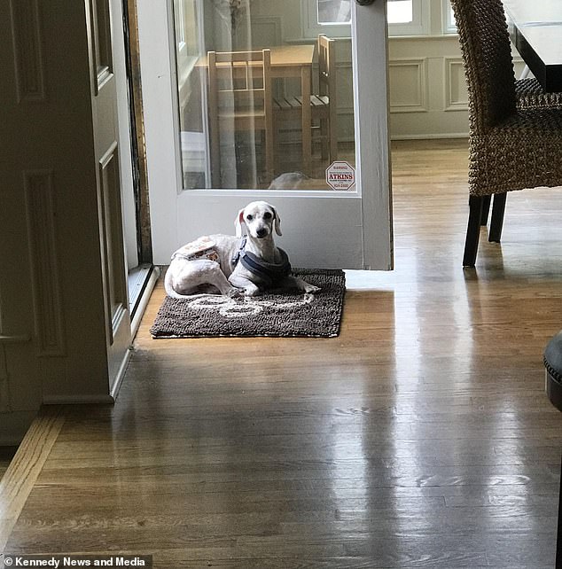 ▼Melissa說:「Jordan以前住的地方太糟糕了,牠根本不會躺下睡覺。」在Melissa的愛護下,Jordan逐漸好轉,「牠開始搖尾巴,也喜歡跟其他狗狗玩,有時候還學著牠們的樣子躺下。牠在慢慢進步,這讓我非常開心。」