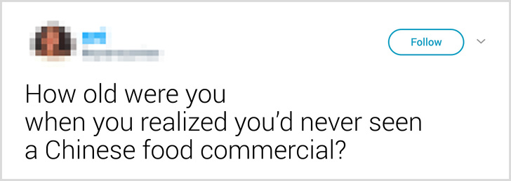 ▼「你在幾歲時才意識到,自己從來沒有看過中餐廳的廣告,可是他們的生意卻始終歷久不衰?」