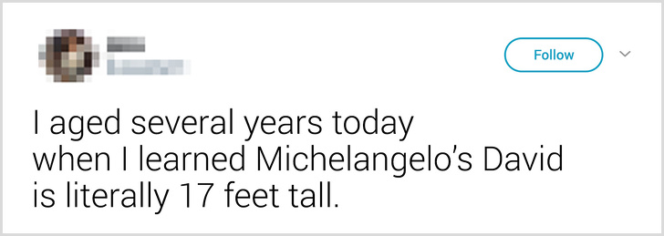 ▼「原來米開朗基羅的大衛像,竟然有17英尺(5.18公尺)高。」