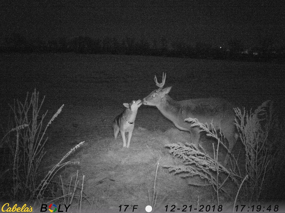 ▼柯達和這隻野鹿在田野之間一起玩耍、互相依偎,兩人的互動可愛得令人融化!
