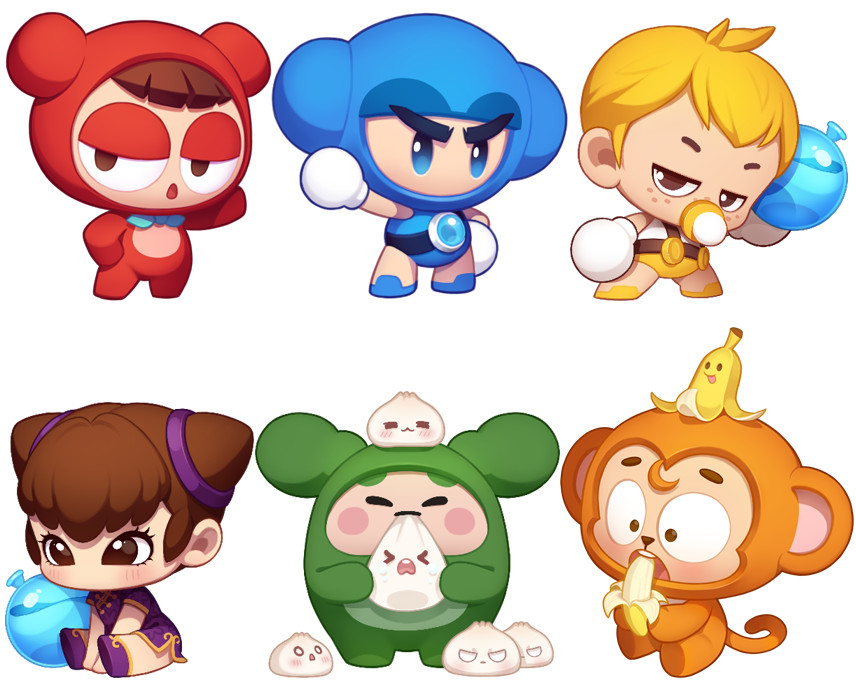 ▼在3/21上線的《爆爆王M》中,玩家將可以操作6個角色,包括熟悉的睏寶、藍寶、囡囡、痞子妹、丫肥,並新加入角色戴奇。睏寶的特殊技是在脫離水泡時,速度會暫時提升,藍寶則是拯救友軍脫離水泡時,會暫時獲得盾牌保護友軍。囡囡特殊技能是以水球捕獲敵人時,自身移動速度短暫提昇。痞子妹則是拯救同伴後自己暫時隱形,同時也暫時提昇移動速度。ㄚ肥吃掉場上的道具時,將會減少自身技能冷卻時間。新角色戴奇則是場上一旦有友軍水泡被踩破,速度就會暫時提升。