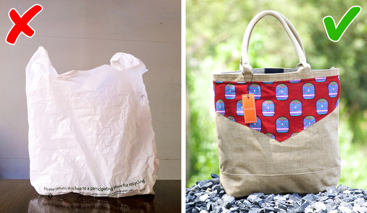 ▼減少使用塑膠袋,改成攜帶可重複使用的環保購物袋。