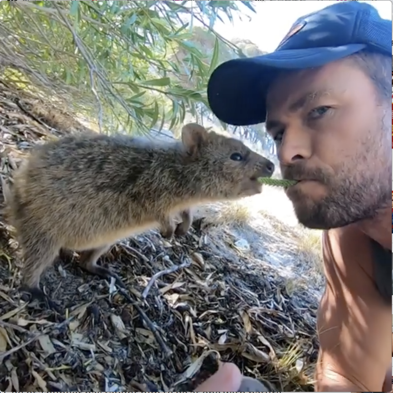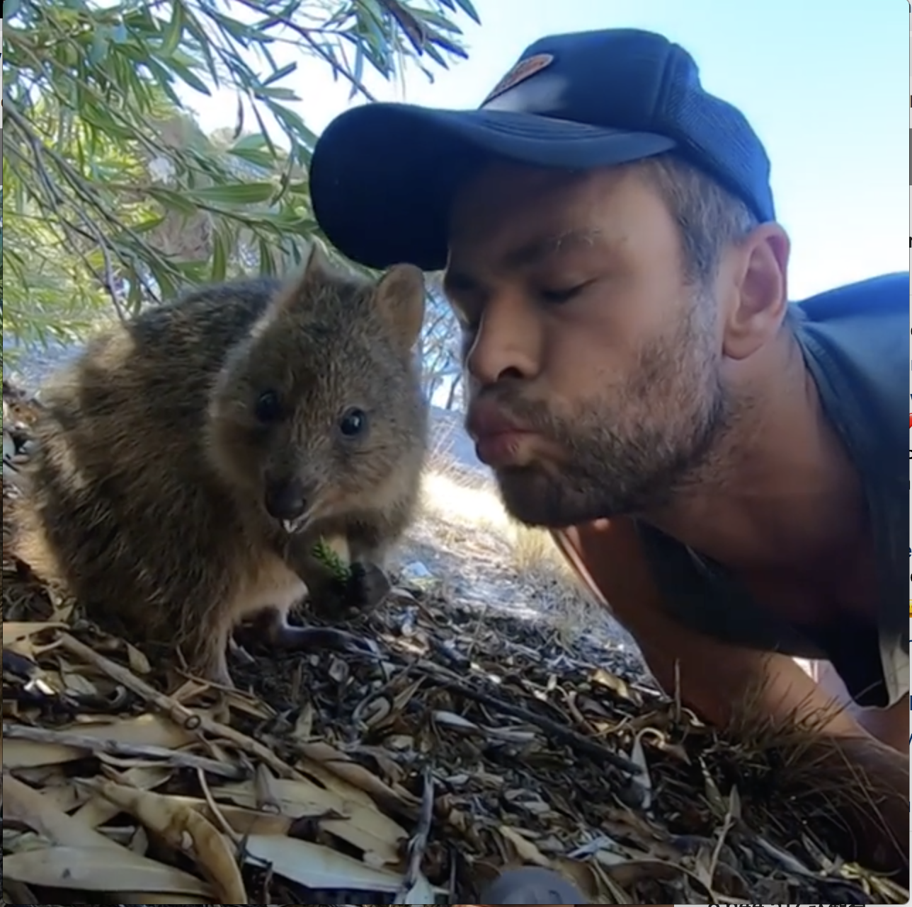 飾演「雷神索爾」的克里斯漢斯沃(Chris Hemsworth),日前在Instagram上傳了他在澳洲跟「短尾矮袋鼠」(Quokka)玩嘴對嘴餵食的遊戲;激萌的畫面讓粉絲不禁大喊好羨慕!