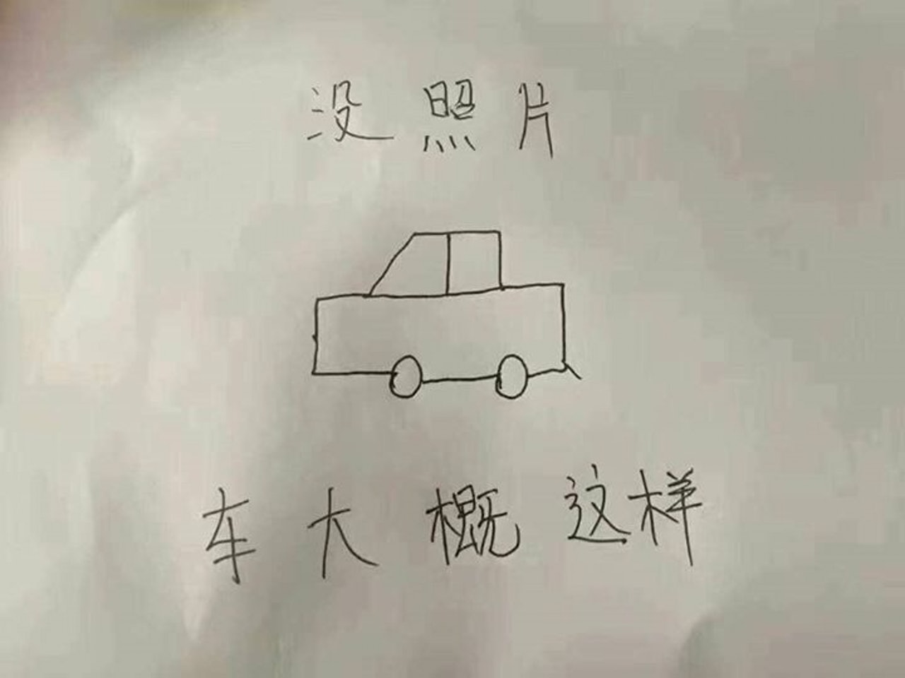 ▼奇葩網友po出自己的手繪圖,還在空白處注明「沒照片,車大概這樣」。這張精簡版的汽車手繪圖畫著兩個輪子、兩扇窗戶、車頭燈和排氣管,每個構造都是簡單的線條表示,抽象到讓人抓狂。