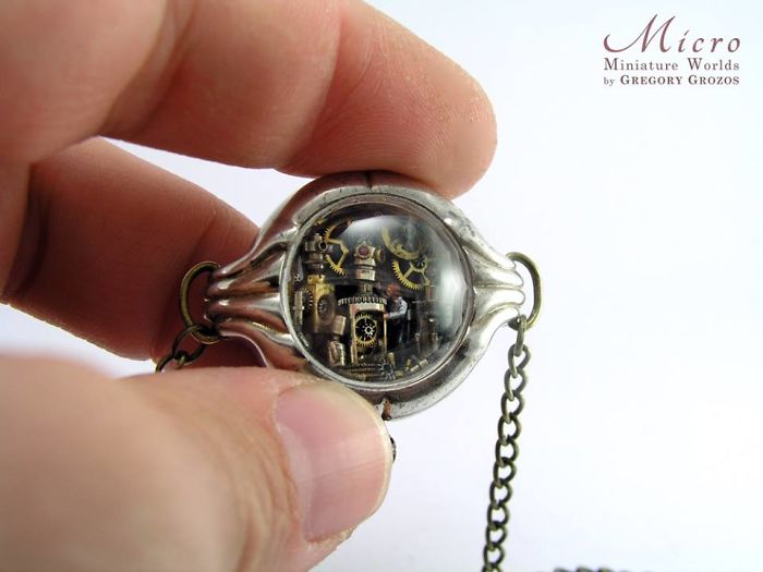 ▼格里高利經營著一家店「Micro」,店裡賣著他的創作;他巧手將一個個「迷你世界」(Miniature Worlds)塞進老懷錶中,給予懷錶新的生命。