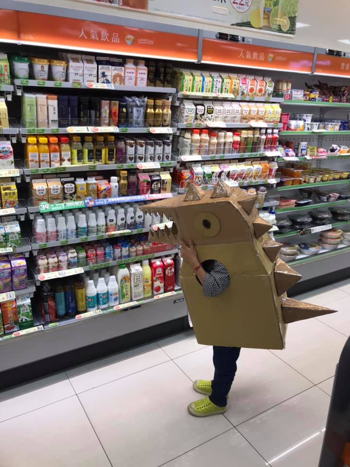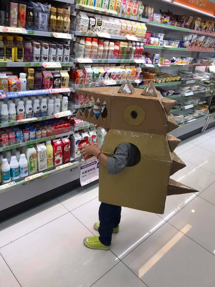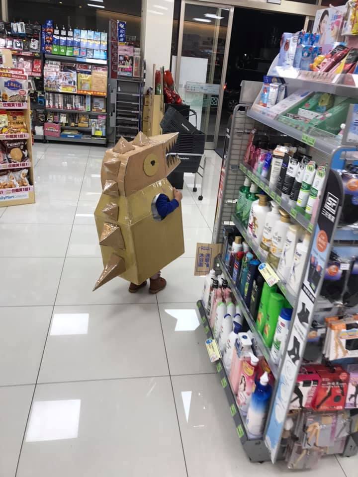 ▼原po也分享了幾張兒子穿著恐龍裝,前往便利商店買飲料的可愛模樣,讓網友們紛紛直呼:「太可愛了!」