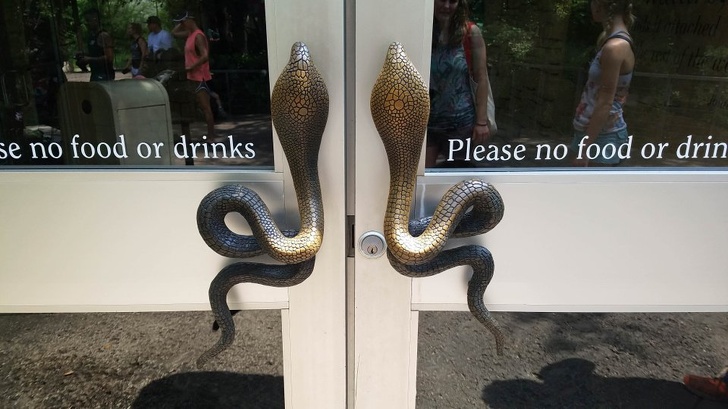 ▼美國沃斯堡的兩棲動物展覽館門把。