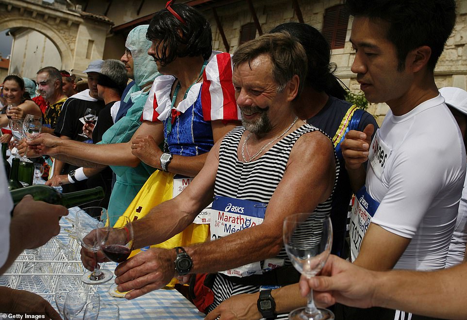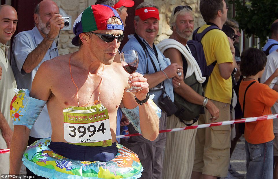 ▼比賽期間,選手可以喝紅酒,吃生蠔、牛排、奶酪和冰淇淋等食品。邊跑邊吃,簡直是一大享受。