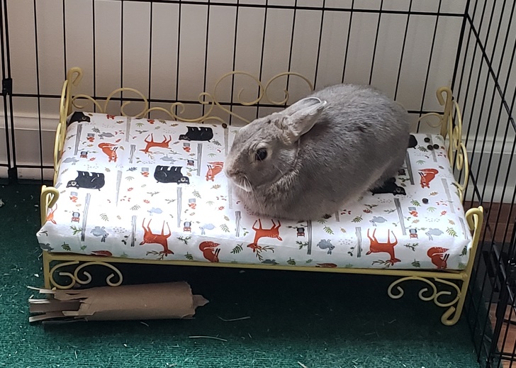 ▼「我的女兒為了她心愛的兔子,拜託我買了一張迷你玩具床。」