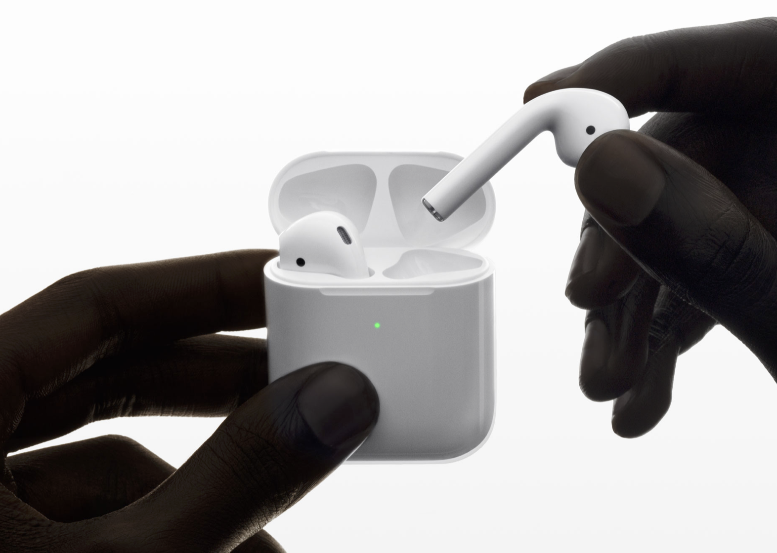 1.新一代的AirPods 2並沒有傳言般推出「黑色版」,而是維持了以往的白色外觀,幾乎跟前一代長得一模一樣。