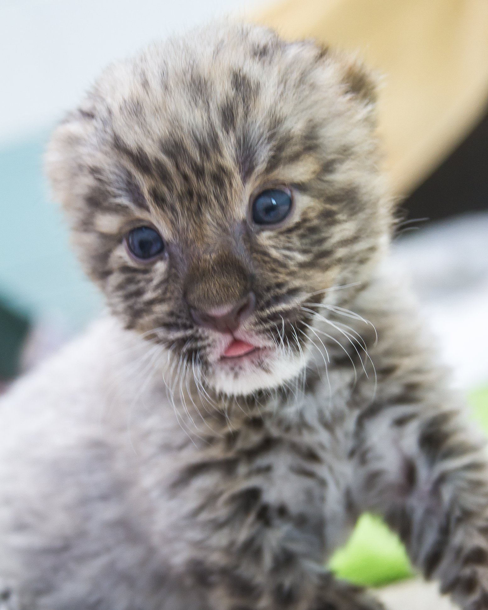 ▼1月25日,遠東豹Freya生下了三隻幼崽。其中一隻雄性幼崽不幸因為母豹過度舔舐夭折,另外一隻雄性幼崽和一隻雌性幼崽成功活了下來。動物園的副主任Goff解釋說這很正常:「你必須小心看待第一次當媽媽的母豹,牠不知道會做出什麼樣的反應。牠們不像人類,有人告訴牠懷孕後該怎麼做。」