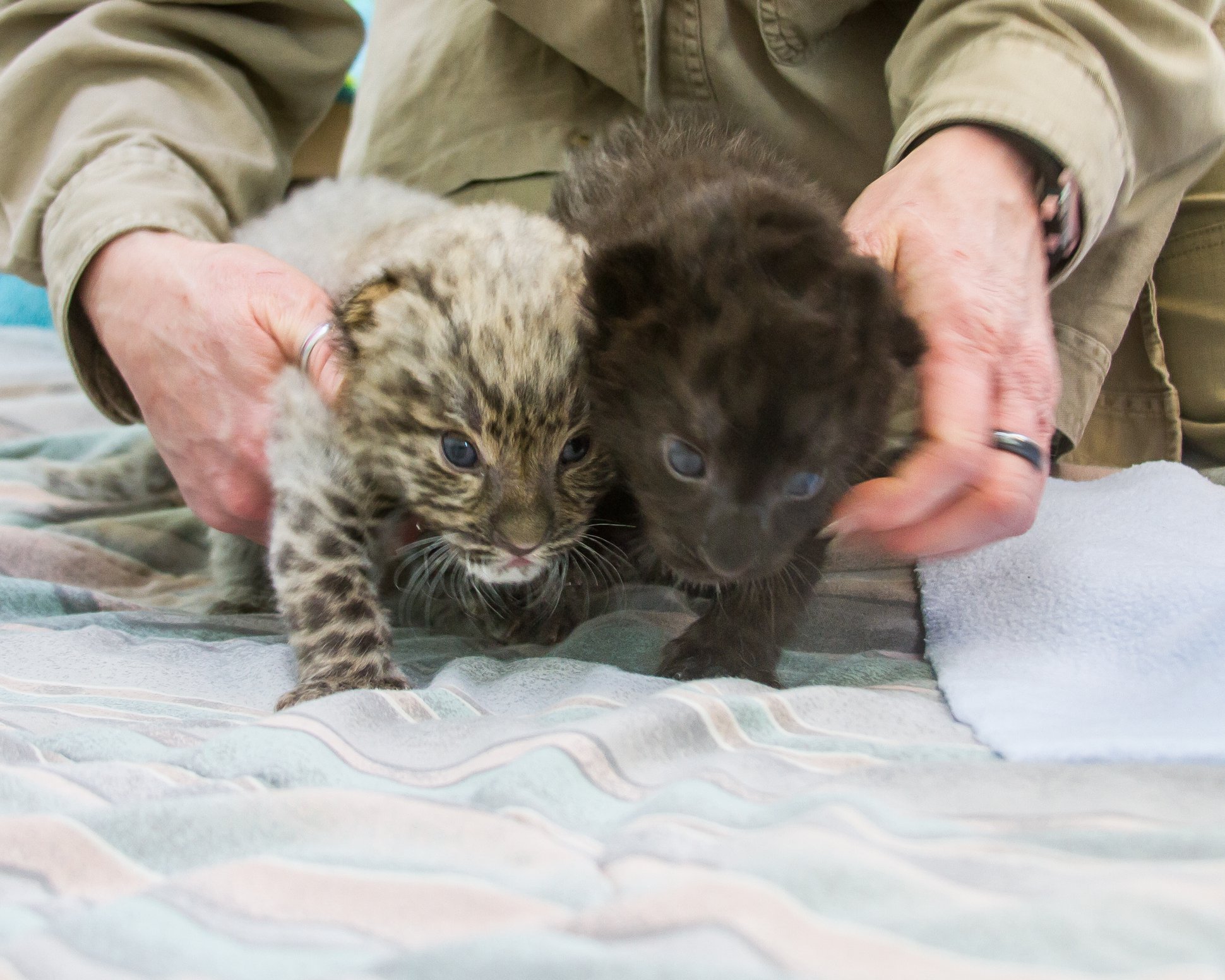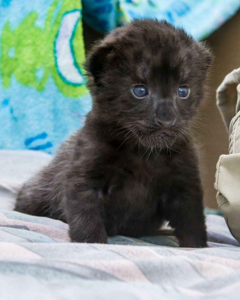 ▼當媽媽對幼崽構成危險時,工作人員帶走了幼崽進行照顧。特別是雌性幼崽出生不久後就接受了大手術,並失去了尾巴,幸好正在康復中。這隻雌性遠東豹是美國僅有的兩隻「黑變病」遠東豹之一,這是一種罕見的大型貓科動物的黑色變異症狀,另一隻黑色的遠東豹現在生活在聖地亞哥動物園。
