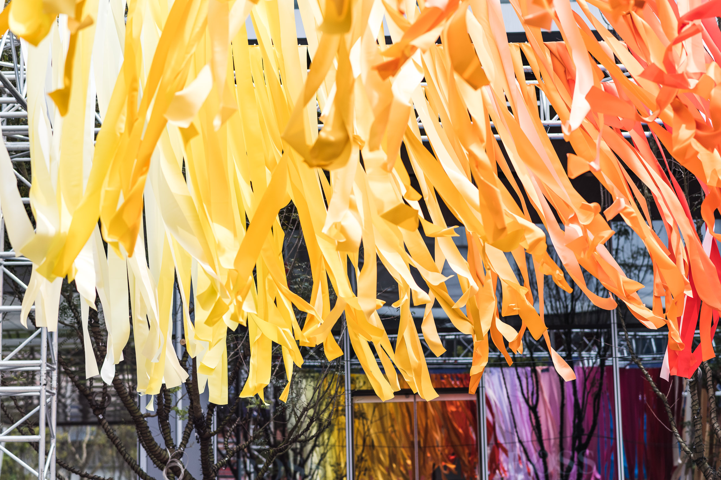 Emmanuelle Moureaux自2013年開始進行「100 Color計畫」遍佈全球,透過日本傳統空間元素「色切(shikiri)」的概念,用100種顏色來標的色彩可能性,致力讓色彩成為城市的主角,強化色彩的存在。在今年探訪信義商圈,在大樓間的綠地進行顏色的演藝,民眾可以盡情地與這漂浮的色彩雕作互動,走進Emma對這空間的顏色詮釋,享受這彩虹般的繽紛氣息。