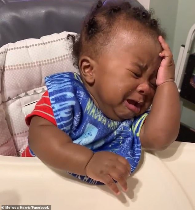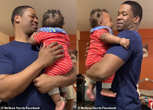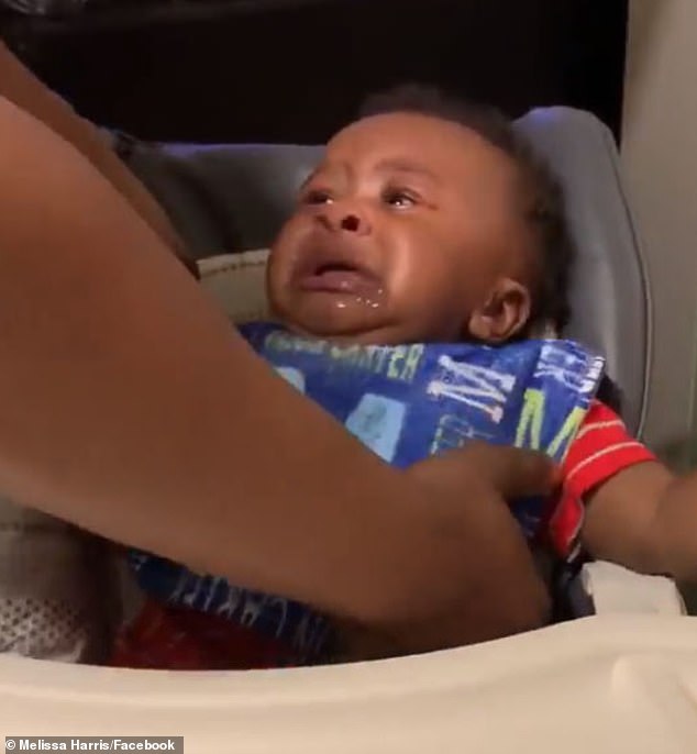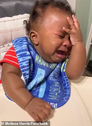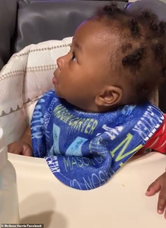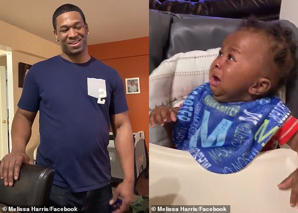 ▼這個小寶寶名叫梅森(Mason Carter Harris),影片中他正坐在嬰兒椅上,看到爸爸格雷格(Greg Harris)回家時竟是陌生的新髮型,他整個懵了。