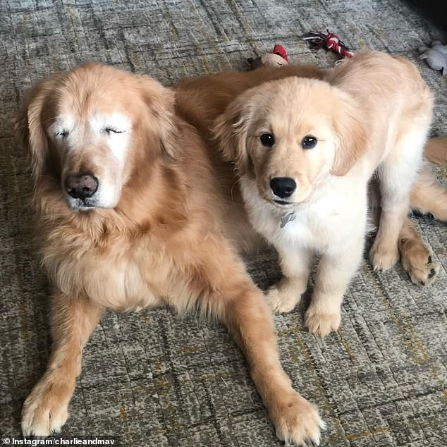 ▼2016年時,Charlie因為老化患上了青光眼,牠移除了左眼,隔年又不得不移除右眼。 徹底看不到後,Charlie很不適應,整天悶悶不樂,幸好爸爸媽媽盡全力照顧牠。後來媽媽Chelsea懷孕了,她希望孩子成長過程中有狗狗陪伴,於是領養了一隻4個月大的小黃金。