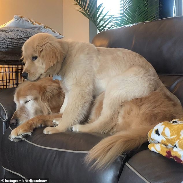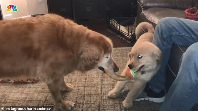 ▼​Chelsea在元旦那天將小黃金帶回家,並給牠取名為Maverick。Maverick非常溫柔,也很細心,牠發現Charlie想玩玩具,但因為眼睛看不到,總是找不到玩具,就把玩具叼到哥哥面前,主動邀請牠一起玩。