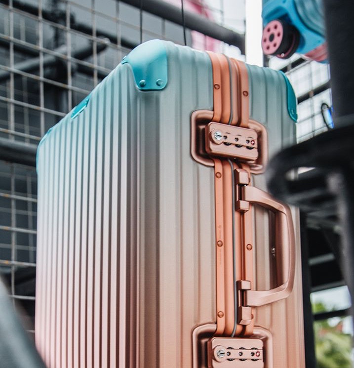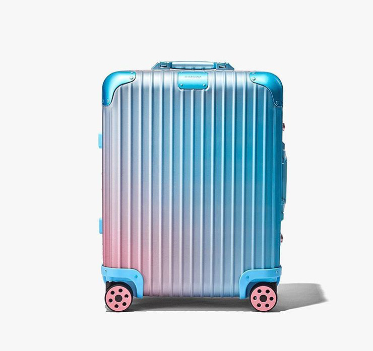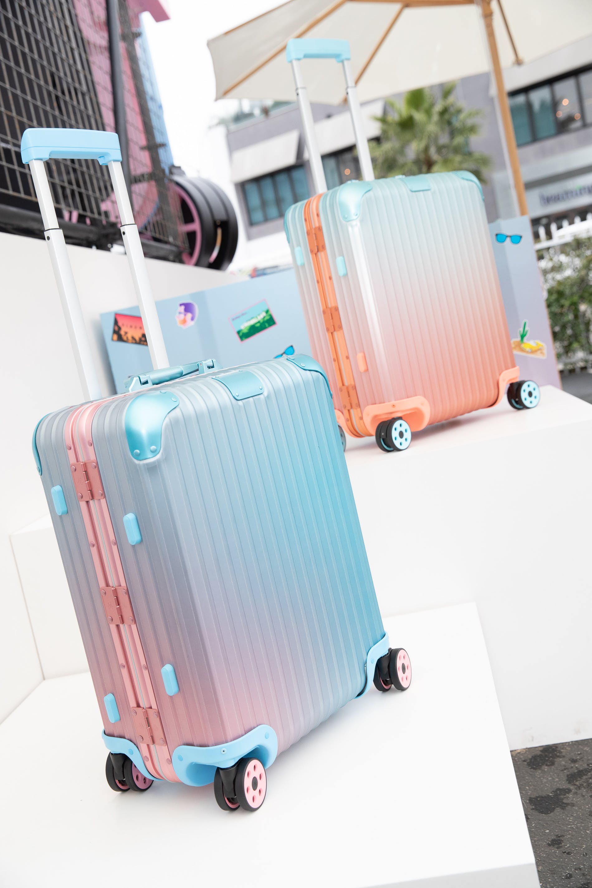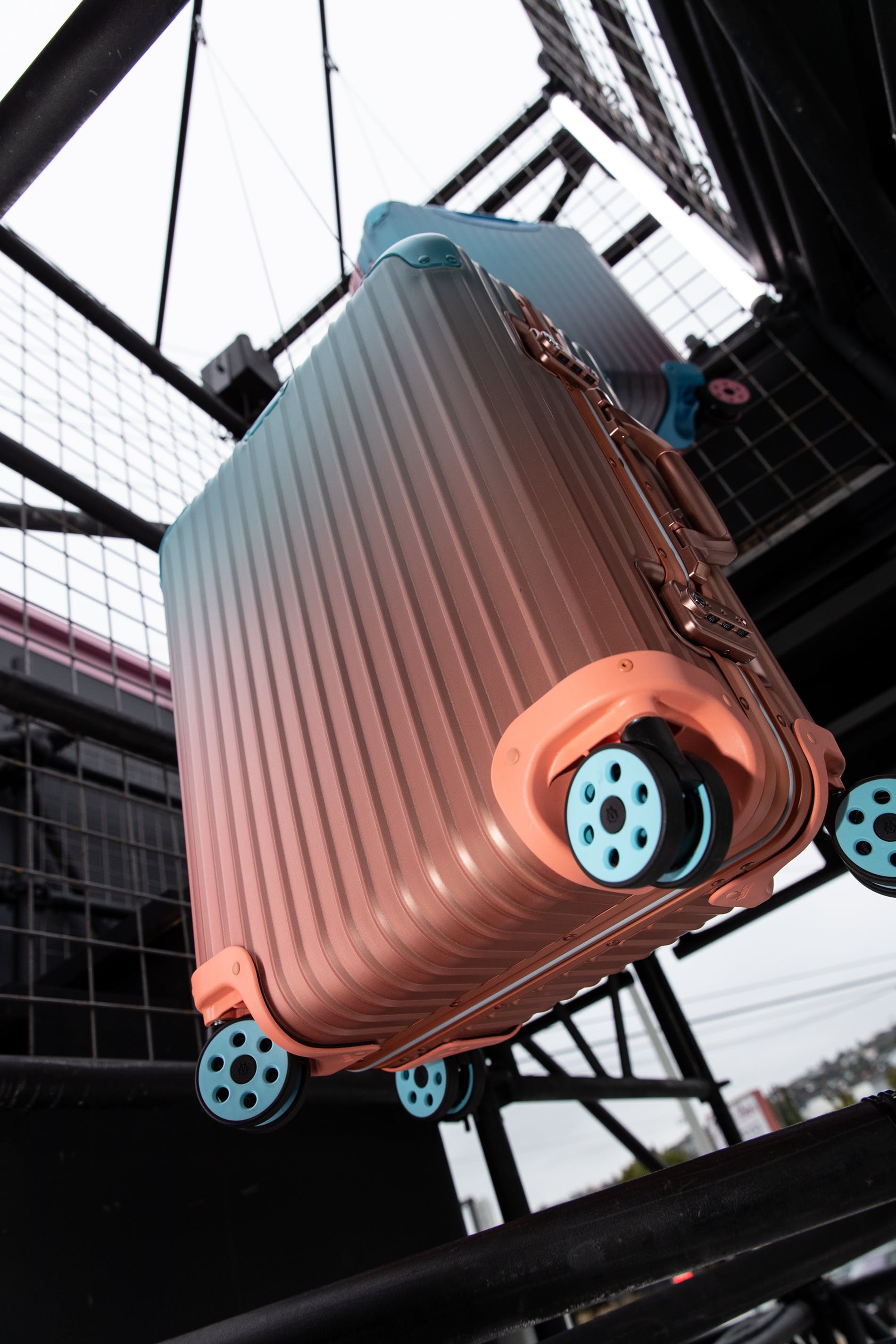 ▼這一次他將 RIMOWA 經典的外殼染上了粉嫩的玫瑰金,再搭配天空藍的漸層色調,絕對令無數少女們心動!