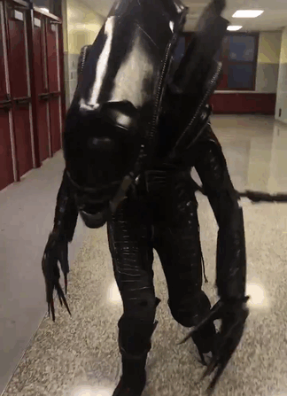▼北伯根高中戲劇社的學生將1979年《異形》改編成舞台劇,服裝、道具、場景都神還原,被po上社群網站後引發話題。