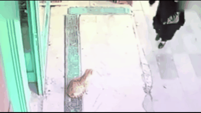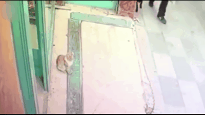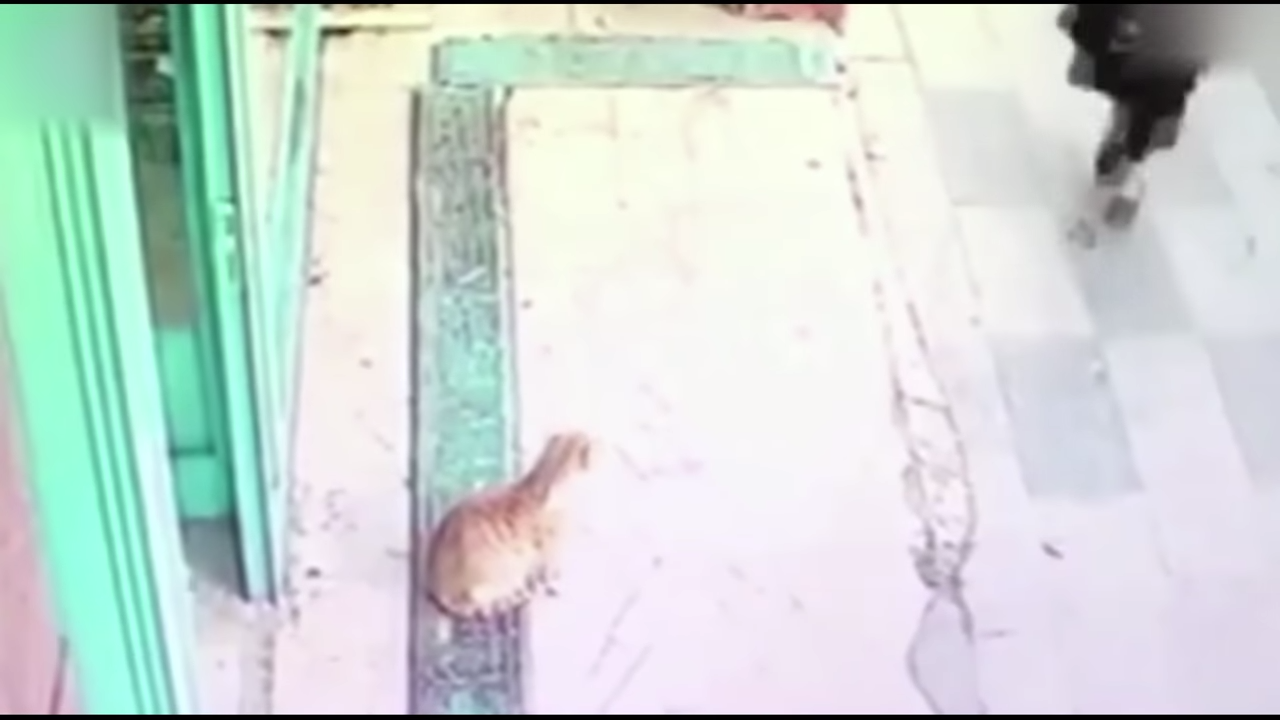 ▼監視器拍下貓咪飛噗路人的畫面,而且牠只對狗和男人起反應;當地人表示這隻貓以前並不會這樣,因此打算將牠帶去給獸醫檢查貓咪無故抓狂的原因。