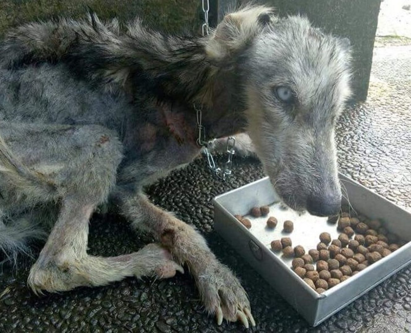 ▼偶爾遇到好心人餵牠一點食物,但牠還是繼續在街頭流浪,沒有辦法好好吃飯,最後瘦成皮包骨的樣子。