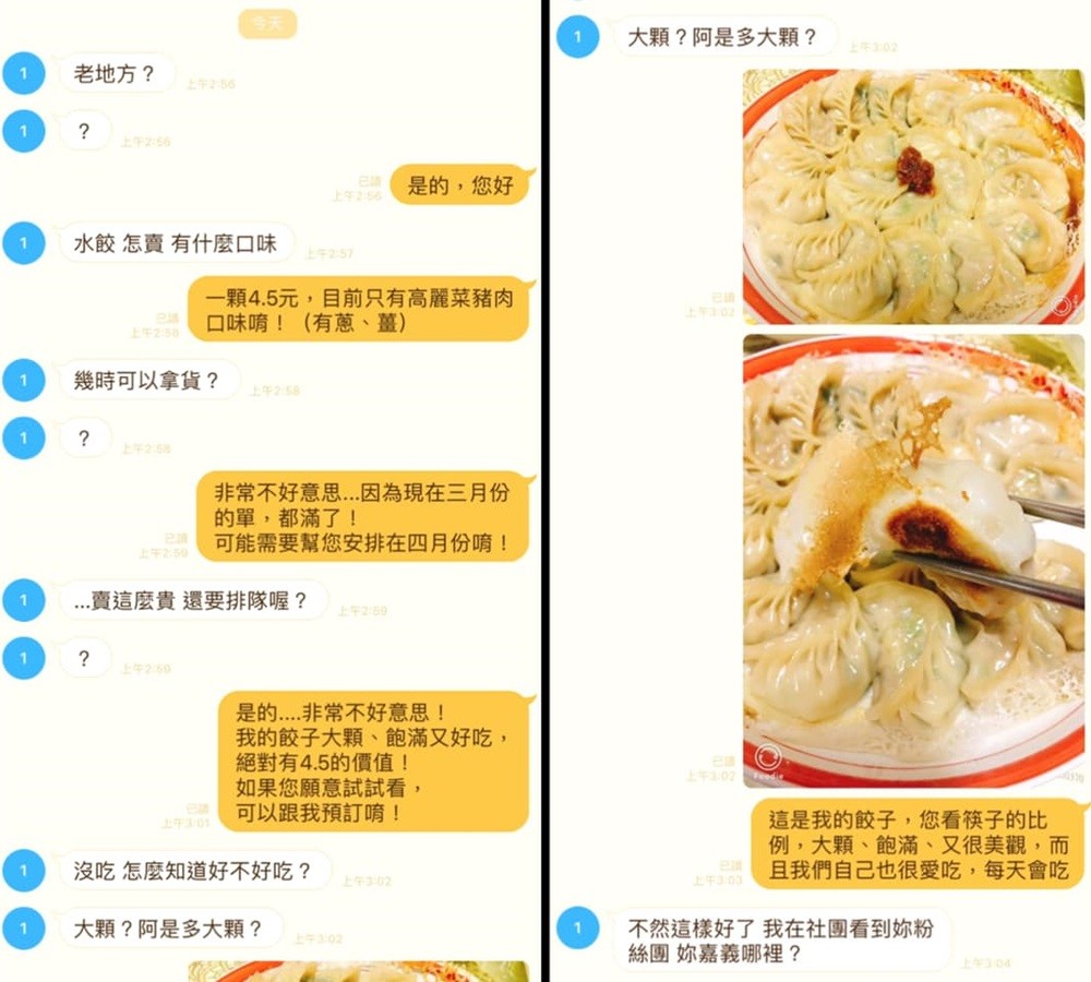 奧客傳LINE「送10個水餃來試吃」 連拗5次失敗就嗆人:賞臉妳不要