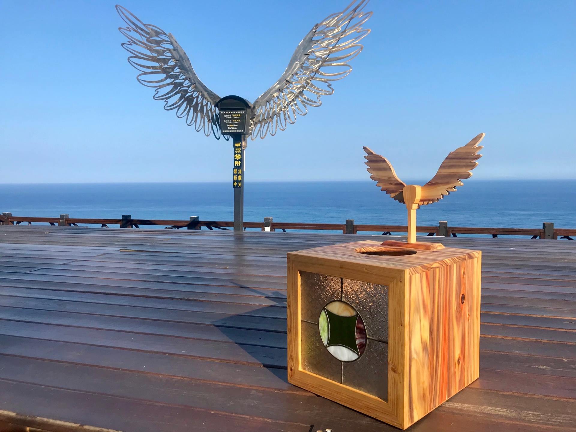 ▼設置一座無邊際木棧平台,平台中間有一座鋼鋁製「天使之翼」,浪漫的天使翅膀與背後一片蔚藍大海和藍天,是許多遊客前來打卡拍照的吸睛裝置藝術。