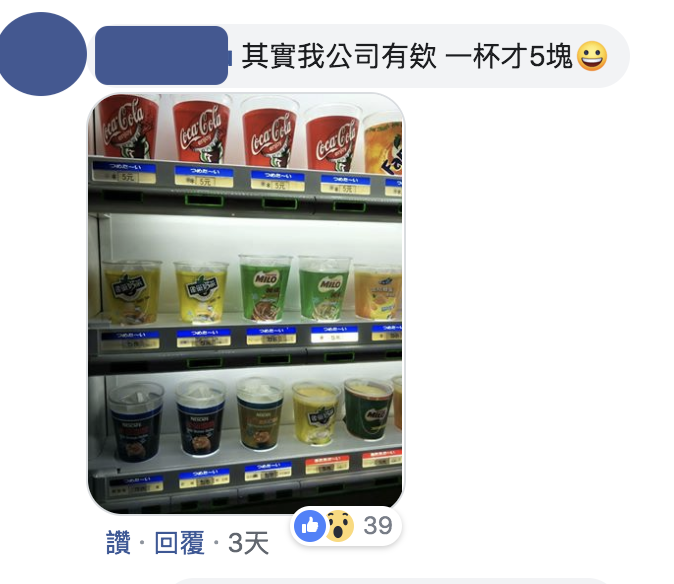 ▼大家也紛紛感嘆,現在這樣的老式販賣機已經幾乎見不到了。不過,有人表示他公司裡還有,而且一杯只要五元(是員工價嗎?);還有人說在新北中和烘爐地土地公廟旁還能找到這種販賣機,如果真的超懷念的人可以去朝聖啦!