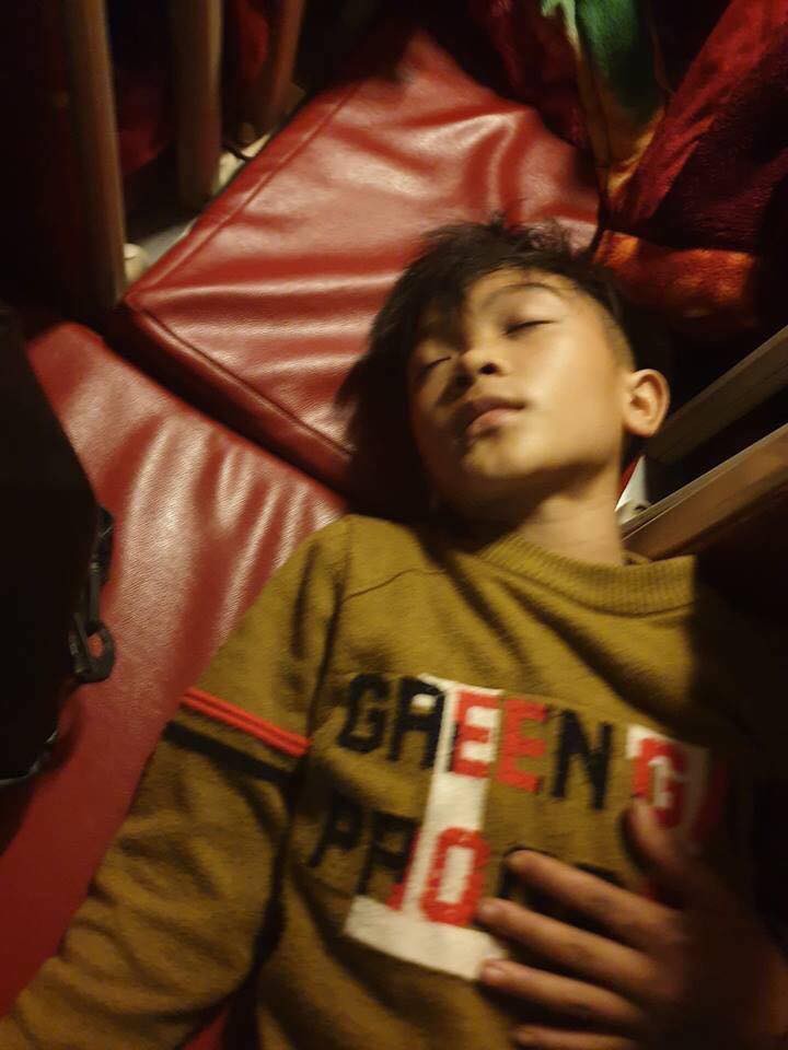 ▼見到媽媽和弟弟,確定他們平安無事後,Chien倒在床上很快睡了過去。