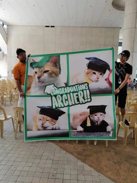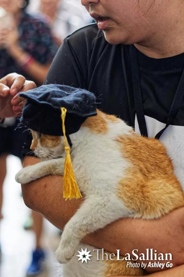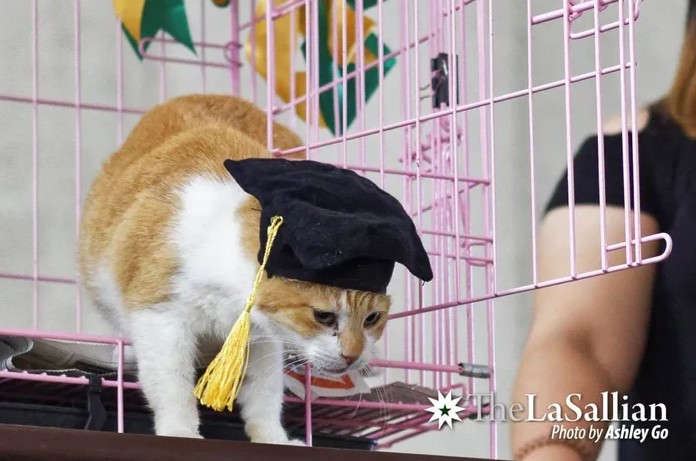 2019年03月30日校園裡有隻可愛的毛小孩,能夠療癒全校師生的心靈,是件非常幸福的事!菲律賓馬尼拉的名校德拉薩大學(De La Salle University-Manila,DLSU)就為一隻常出沒在校園的橘貓,舉辦了一場盛大的畢業典禮!
