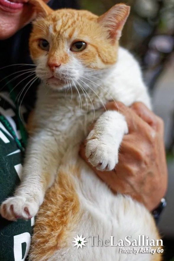 ▼原來這隻貓名叫 Archer,是德拉薩大學中的校貓,許多師生都非常喜歡牠。不過由於一些醫療安全的問題,牠被分配給校園的保全帶回家飼養,必須離開德拉薩大學了。