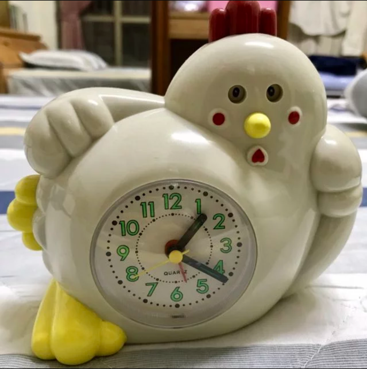 ▼雖然市面上很多以雞為主題的鬧鐘,然而現在這種咕咕雞鬧鐘已經很少見了,這種特別的姿勢也是難以再找到的!