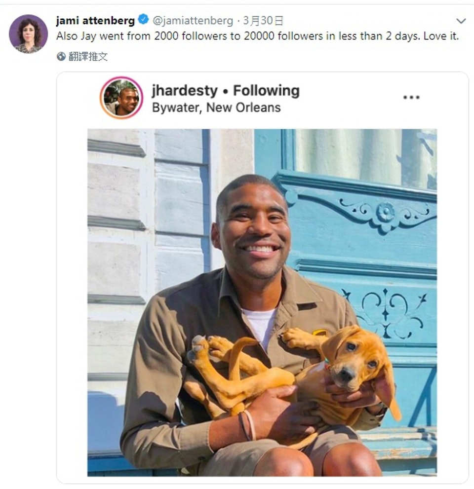 ▼就在不久之前,傑森的追蹤人數突然暴增一萬多人,原來美國知名小說作家 Jami Attenberg 也住在這個區域中,她在推特中分享了傑森的 IG ,讓他一夜爆紅,追蹤人數從原本的2000人變成了如今的4萬多人!