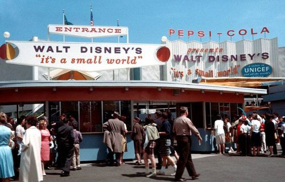 「小小世界」於1964年在紐約舉行的世界博覽會上首次出現,當時是由百事可樂所贊助,除了向全世界的兒童致敬以外,也配合大會所宣揚的世界和平精神。一直到1966年,「小小世界」才正式遷入美國加州的迪士尼樂園,之後另外5個迪士尼樂園也才紛紛興建新的「小小世界」。