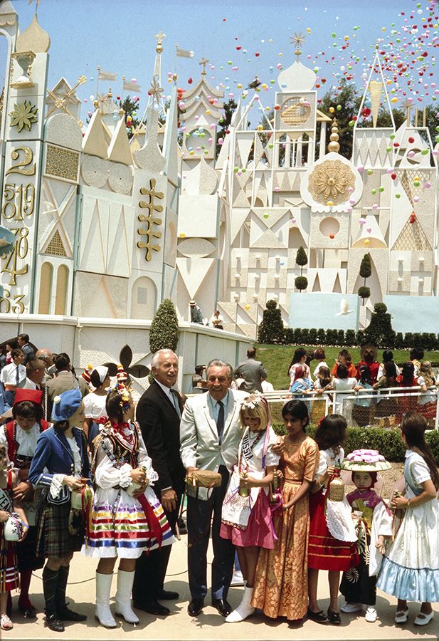 為了配合「世界大同」的主題,1966年加州迪士尼的「小小世界」開幕典禮時,邀請了不同國籍的小孩穿上代表自己國家的傳統服飾,一起慶祝這項設施的開幕。