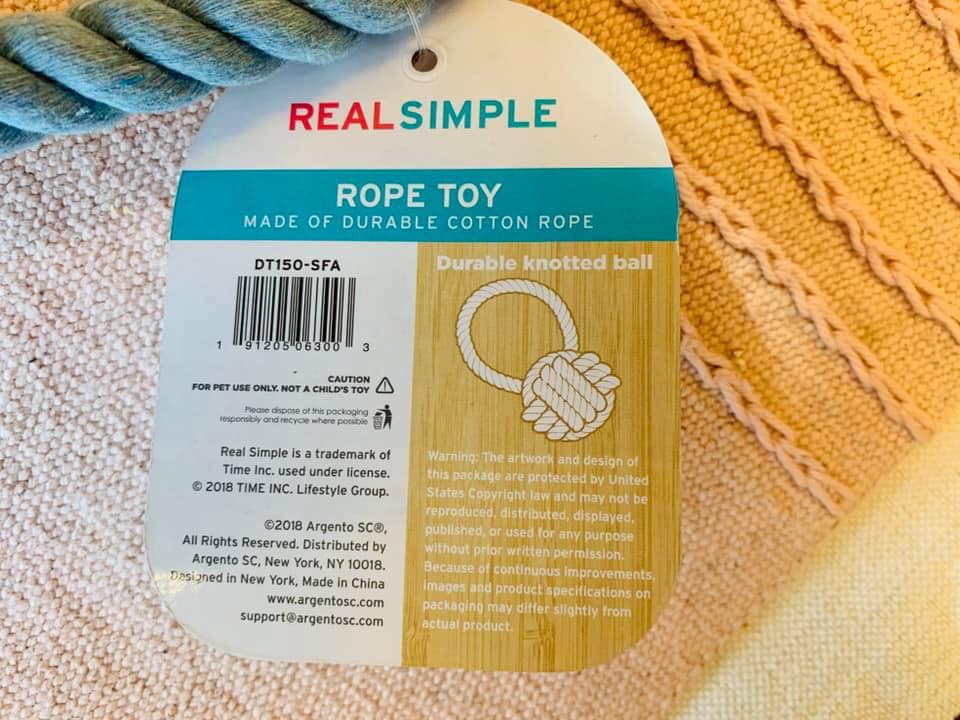 ▼美國女網友Indira Tuckler從信譽良好的寵物用品商店買了幾個繩子玩具。這種玩具很受歡迎,看起來非常牢固,上面還寫著「適合所有狗狗」,所以她很放心。沒想到剛剛過了一天,玩具已經被狗狗咬成了碎片。