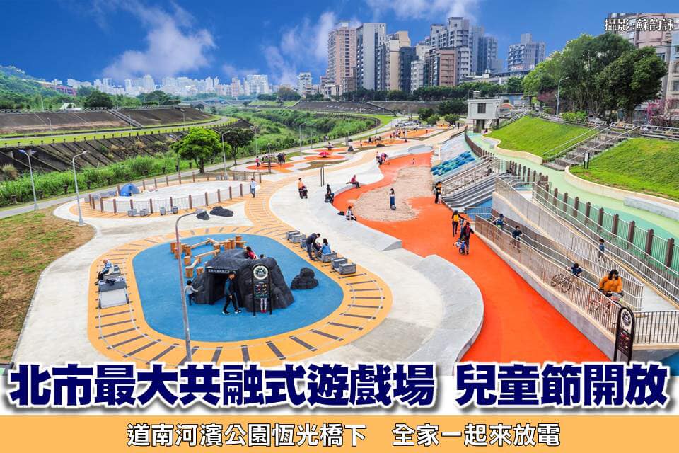 ▼台北市木柵區全新落成的「道南河濱公園兒童遊戲場」,佔地面積足足有4364平方公尺,是北市最大!