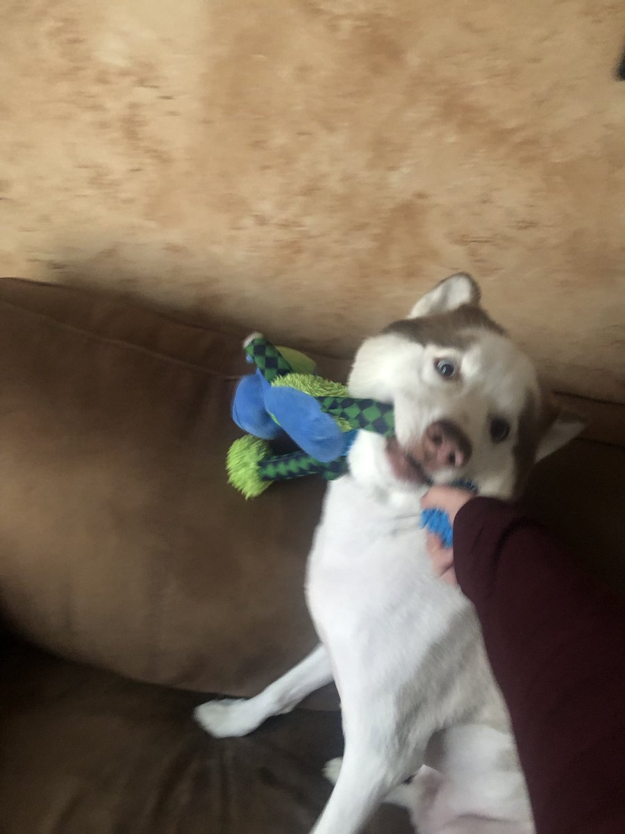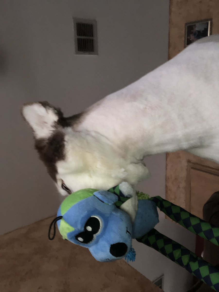 ▼幸好JoJo是一隻很隨性的狗狗,沒有太在意自己的新造型。第二天早上,牠醒來後像往常一樣玩玩具,還求Hannah和牠一起玩。