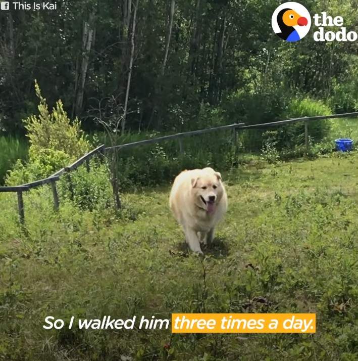 ▼雖然牠還是比普通的狗狗胖很多,但散步、蹦跳已經不再是難事了,牠還舔到了自己的後腳,這在以前是絕對不可能的。