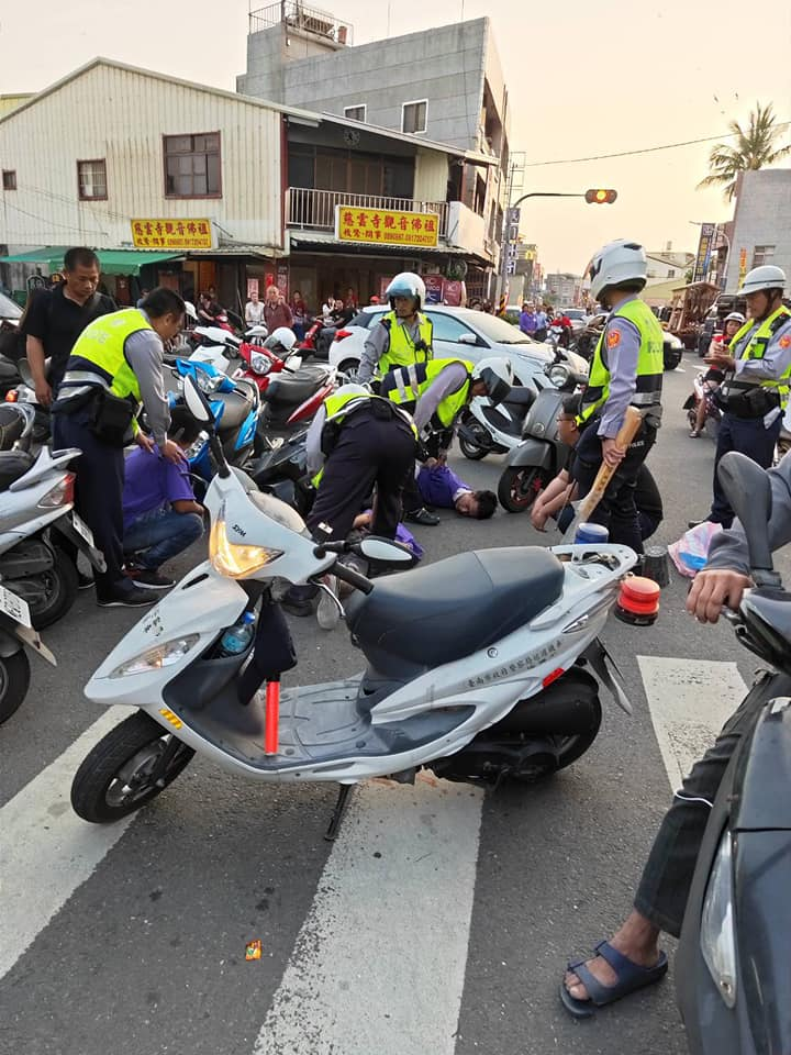 ▼據說事發當時是下午5點,沈姓男子等人騎著機車,因為被擋到而按喇叭示意,結果轎班人員回說「讚讚讚」,但他嗚聽成「幹幹幹」,於是雙方起了衝突,沈男被轎班人員拿棍子敲打導致送醫。結果一個多小時後,沈男弟弟揪了20人在下營農會集結,分別手持西瓜刀跟球棒準備復仇,幸好麻豆分局早已接獲通報,派出快打部隊40多人將沈男這20人壓制,才避免了鬥毆事件進一步擴大。