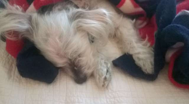 ▼原來這是一隻叫Dobby的狗狗。牠剛剛5歲,已經生病很長時間了,這是主人第一次帶牠看獸醫。主人沒有好好照顧牠,牠嚴重營養不良,毛髮掉光,身上有不少傷口。牠的指甲因為從未修剪過,直接長進了肉裡。很難想像牠忍受著怎樣的痛苦。