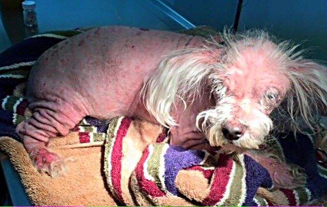 對狗狗來說,遇到不負責任的飼主,是一件很悲哀的事。2016年時,美國佛羅里達州的一名女子走進了一間獸醫院。她抱著一隻全身紅透透、只有頭部還有幾撮毛的可怕小動物,獸醫剛開始根本沒認出那是什麼。