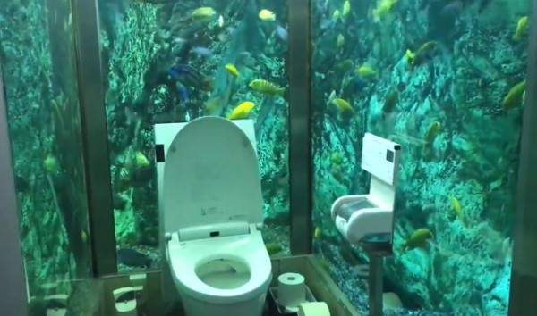 ▼有網友在推特上分享了造訪這間水族館廁所的影片。