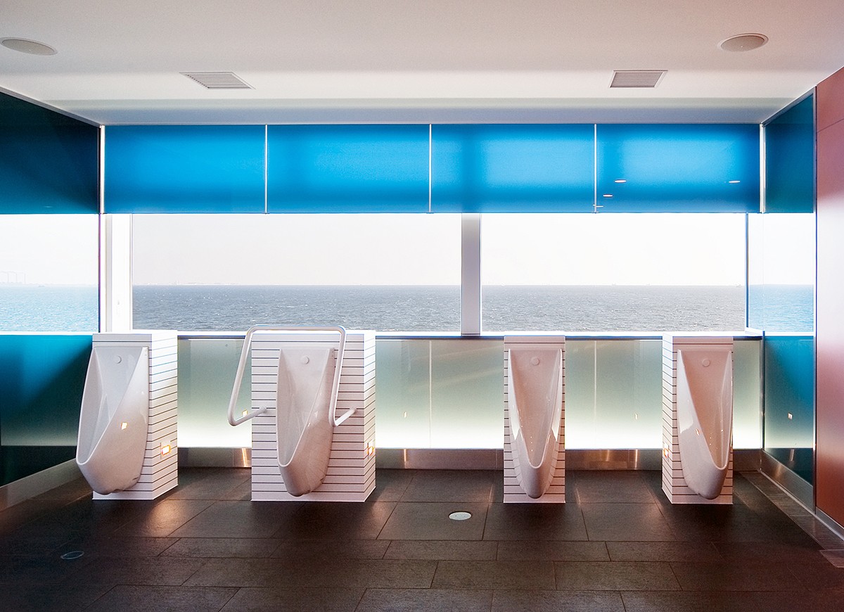 ▼位於東京灣的男廁,眼前就是開闊優美的海景。