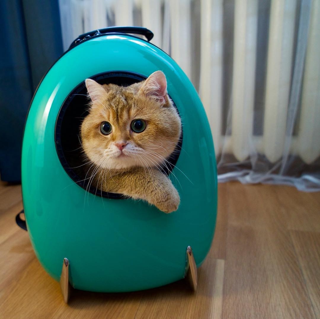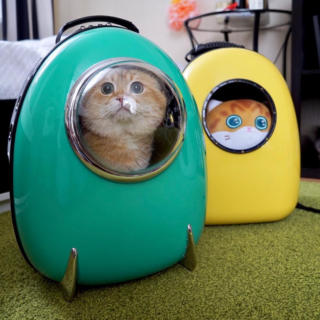 ▼偶爾也會帶著Hosico出去晃晃,這時候「太空背包」就是外出好夥伴啦!