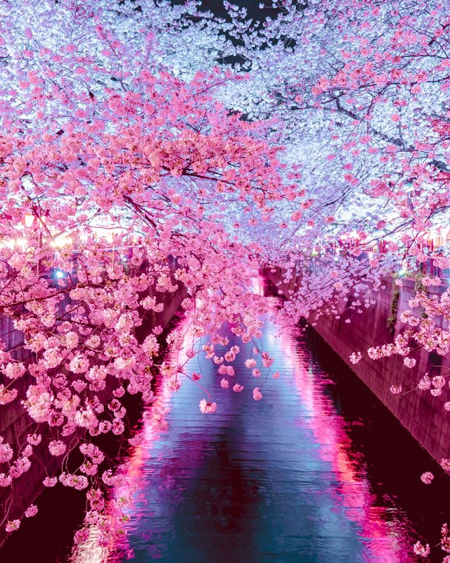 ▼再來看看其他地方櫻花盛開的美景吧!這裡是東京的黑目川夜櫻。